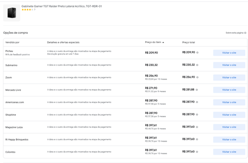 Menor preço segundo o Google Shopping
