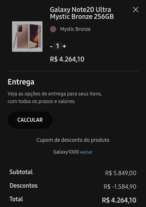 Galaxy Note20 Ultra Mystic Bronze 256GB | R$4264