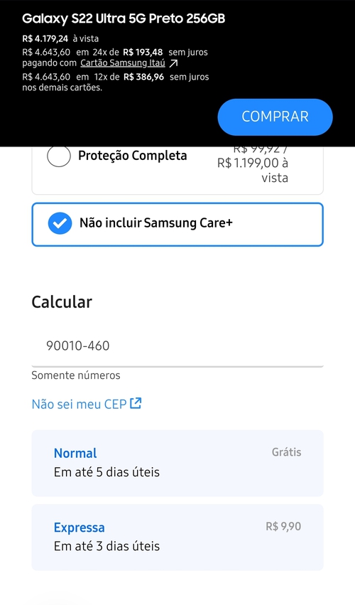 Aqui só aparece por 4600, testei alguns ceps e nenhum com entrega disponível