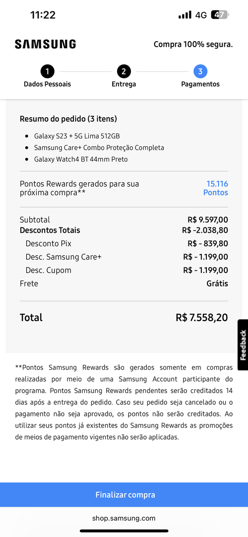 Será que dá para acumular o desconto do Samsung Rewards?