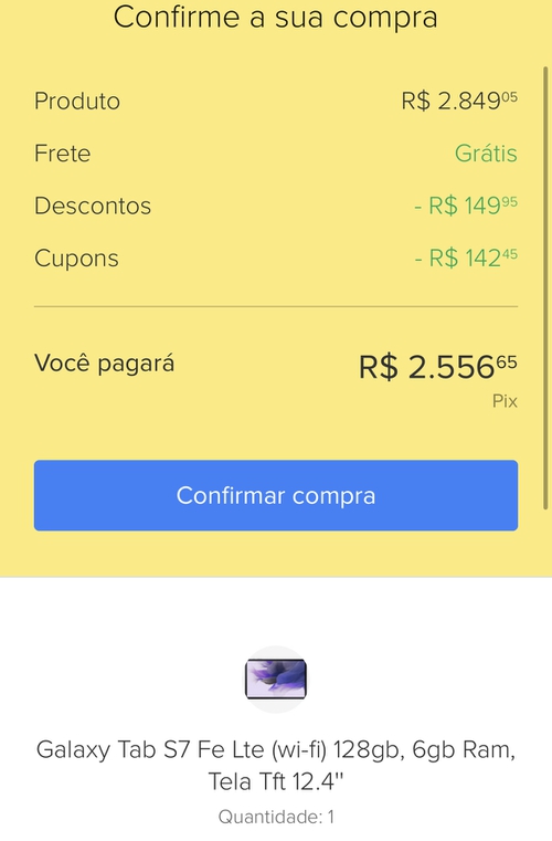 Valor para pagamentos via PIX aplicando cupom disponibilizado pelo Mercado Livre na Samsung Week.