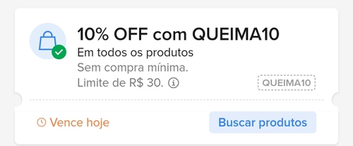 Ganhe 10% de desconto sem valor mínimo limitado a 30 reais
