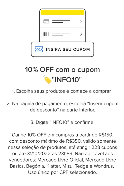 Ganhe 10% OFF em seu pedido com cupom Mercado Livre