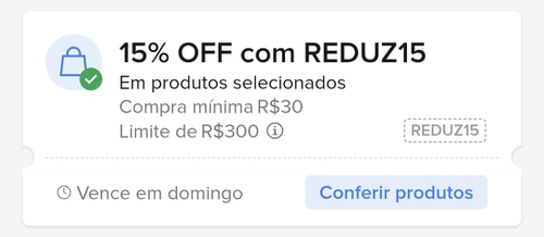 Ganhe 15% OFF em Compras Acima de R$30 na Categoria MODA