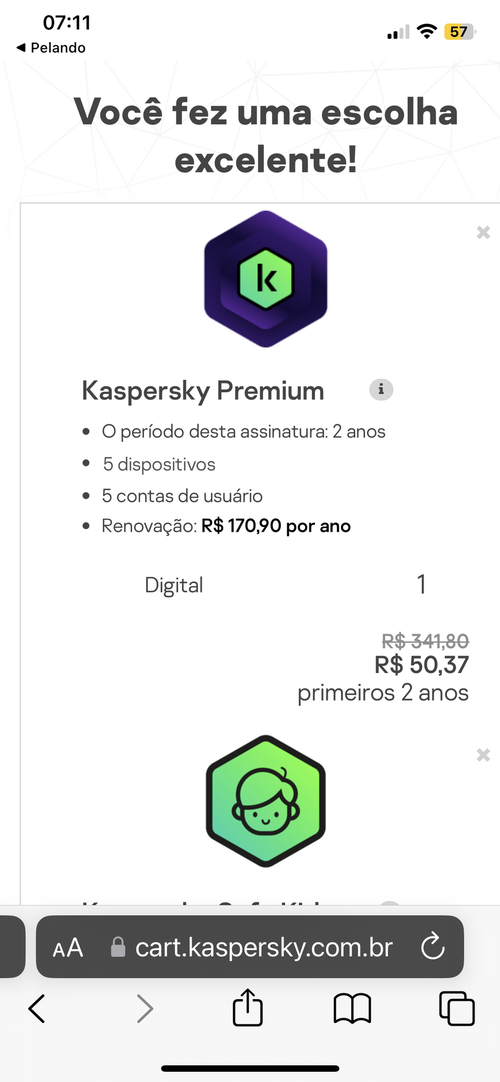 ja tenho ele, ia comprar só a vpn, mas ta saindo o mesmo valor que o Kaspersky Premium