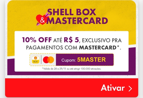 Ganhe até R$ 5 OFF pagando com Master Card com cupom Shell Box