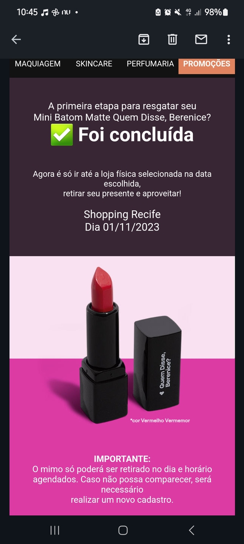 Ganhe o Novo Brinde Quem disse Berenice - Mini Batom Matte! - Grátis