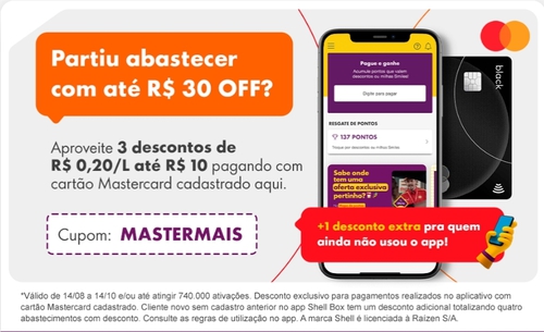 GANHE R$0,20/L EM ATÉ 3 ABASTECIMENTOS E PAGANDO COM MASTERCARD