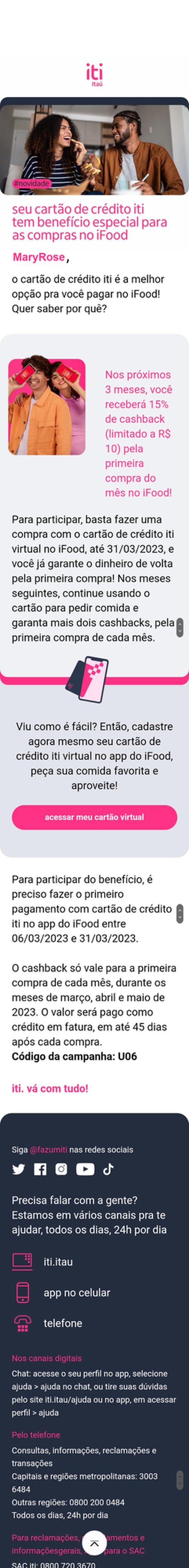 Ganhe R$10 de Cashback para Compras no Ifood Acima de R$70 com Cartão de Crédito Iti