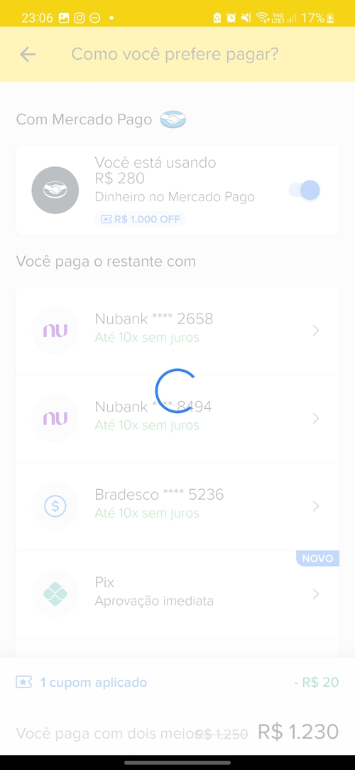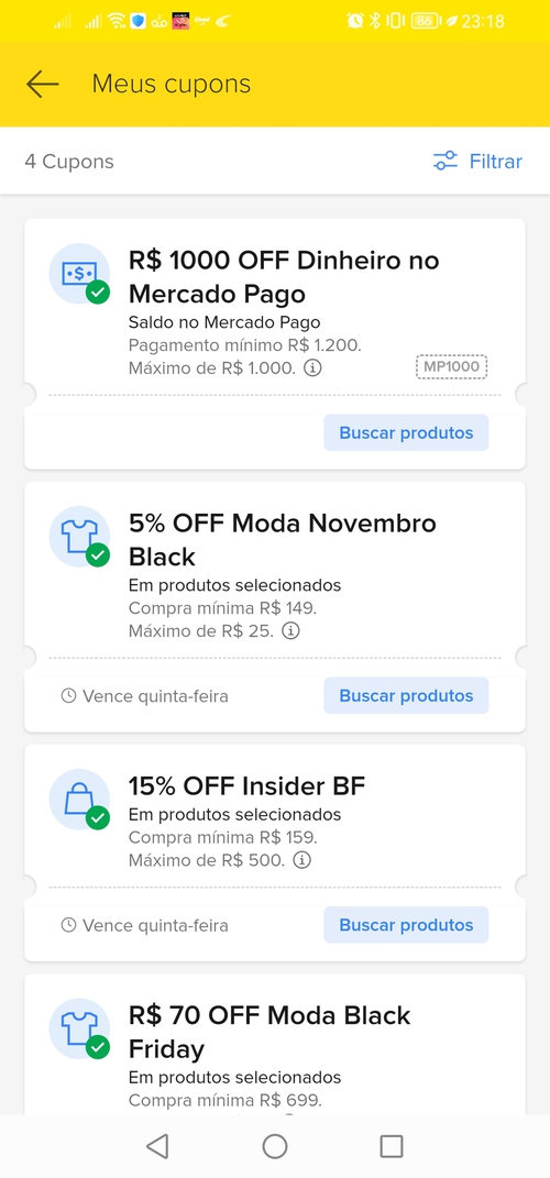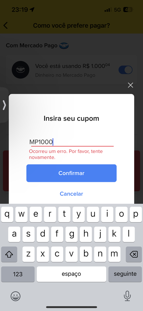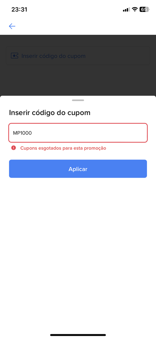 Mp1000 erro no app. Já tava com o celular aberto na compra e só adicionar o cupom