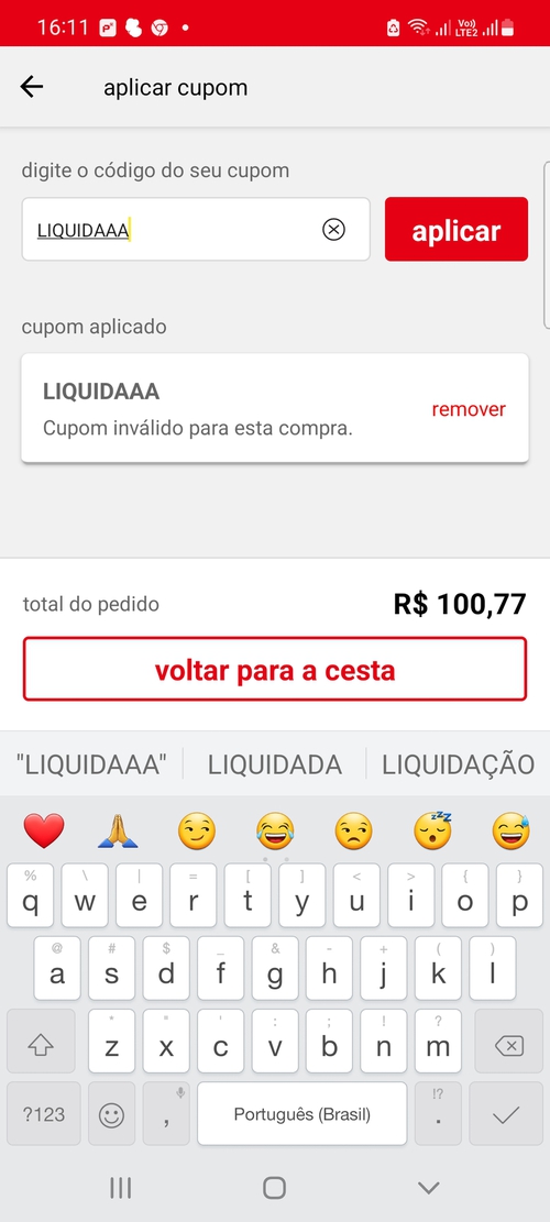 Quando coloquei o cupom, o frete de 15 reais foi para 60 reais. Palhaçada