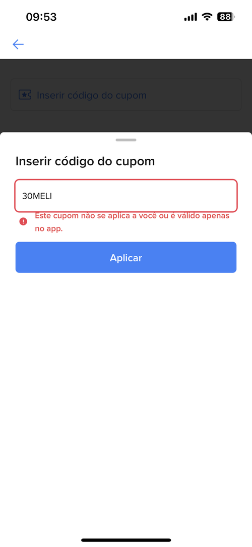 Este cupom não se aplica a você ou é válido apenas no app.