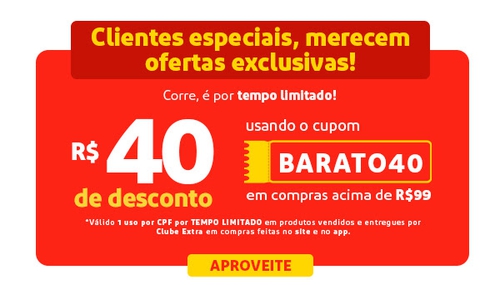 Ganhe R$40 OFF em compras acima de R$99 com cupom Clube Extra