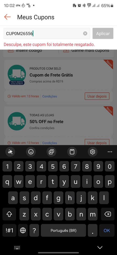 Mês passado usei esse cupom mas o vendedor irresponsável não enviou o pedido.