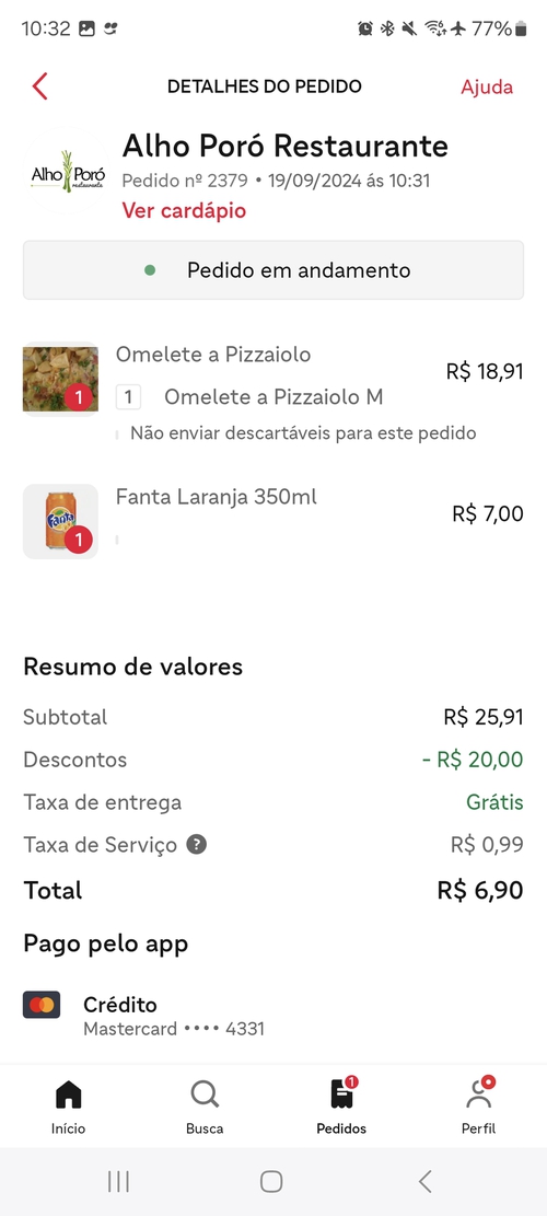aqui deu esse erro em todos os lugares que tentei, mesmo depois de adicionar uma fanta na compra