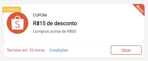 Ganhe R$15 OFF em Compras Acima de R$50 com cupom Shopee