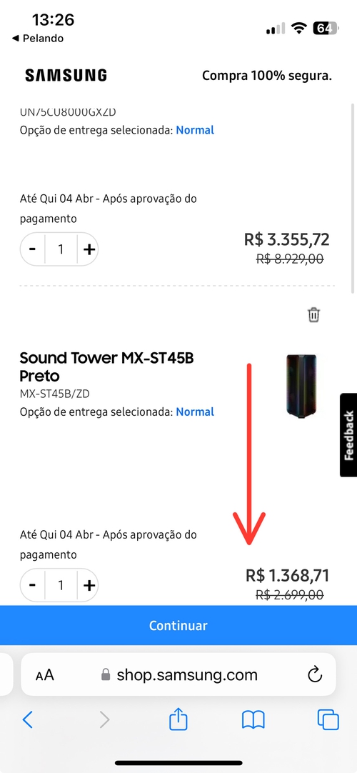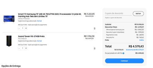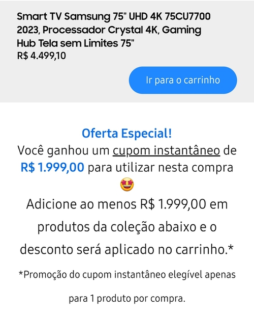 Eu pensei que poderia aplicar esse cupom na compra dessa tv, ficando por 2.500, mas empurram uma caixa de som.