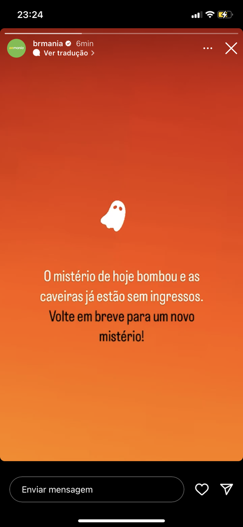 Oi, tudo bem? A caça para desvendar o mistério foi um sucesso, e todas as caveiras já solucionaram essa missão 👻 Infelizmente essa promoção já expirou e você enviou fora do período de participação, mas não desanime! 🎃 Em breve a caça aos mistérios continua! Fique ligado(a) em nossas redes