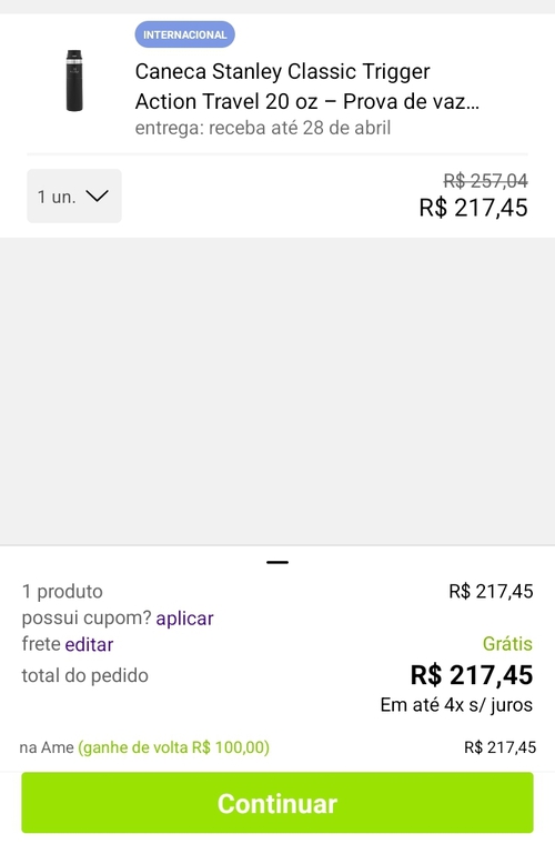 Não chega no valor, sem cupom o cashback fica em 100 reais, a garrafa custaria 107, se aplicar o cupom o caskback cai para 34 reais e aí a garrafa custaria 139,00