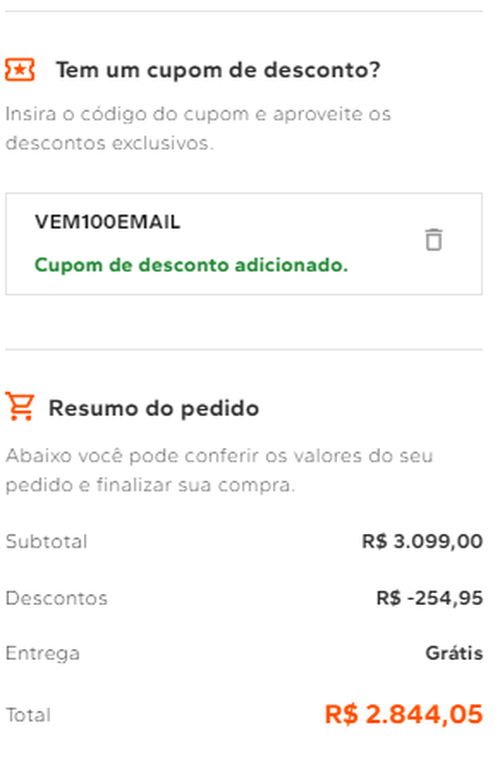 Precinhooo R$ 2.844,05 no Pix ou em até 1X no cartão