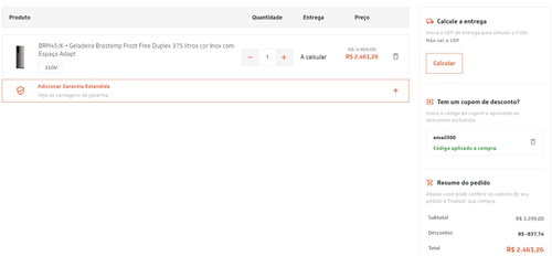 Aqui chega a aparecer por R$2761 (sem o cupom, passando os parametros ai) na tela do item, porém quando entra no carrinho ja muda pra R$2.969