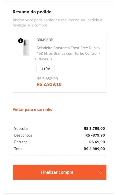 Mas pela minha experiência com esses sites Brastemp e Consul, nunca consegui chegar no valor. Sempre que ia pro carrinho, na hora de fechar o preço mudava pra maior. Inclusive deixei passar algumas oportunidades por isso.