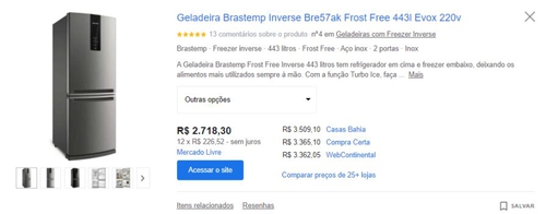 Geladeira Brastemp Frost Free Inverse 443L - Inox - BRE57AK | R$ 3.065