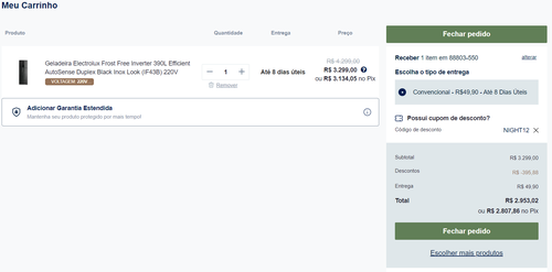 Comprei na black friday por 2569 com cupons, gostei dela, freezer grande e atende bem 2 pessoas.