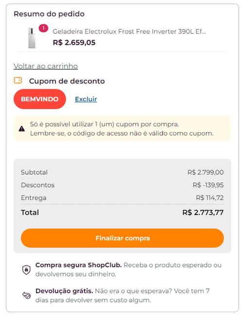Precinhoooo R$ 2.659,05 a vista ou pode parcelar em até 10 parcelas de R$277,37 sem JUROS no cartam