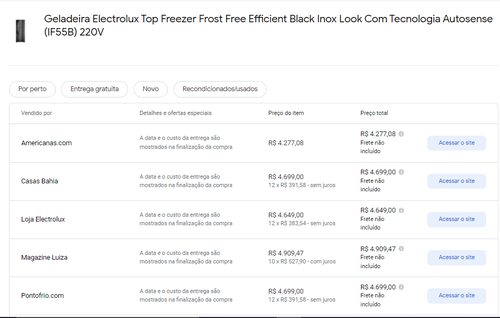 Menor preço segundo o Google Shopping