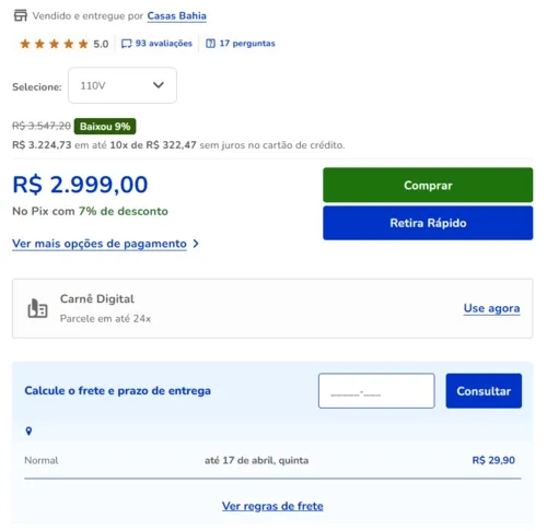 Precinhooo e ainda dá pra dividir em até 10x de R$ 322,47 no cartão de crédito.