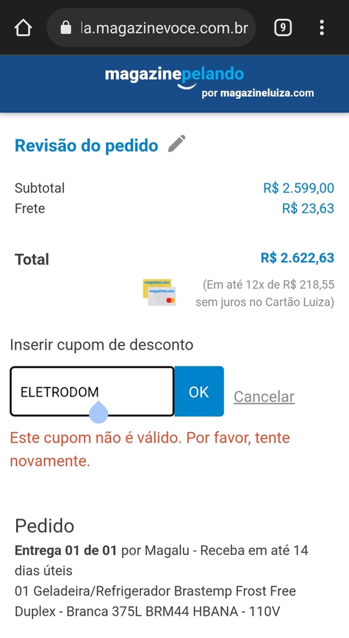 Consta cupom inválido