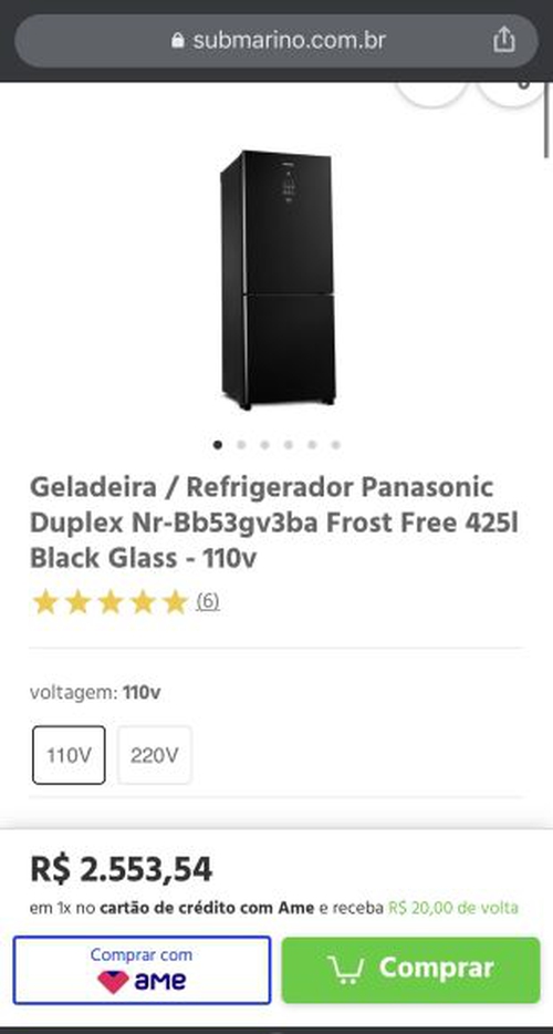 Geladeira / Refrigerador Panasonic Duplex Nr-Bb53gv3ba Frost Free 425l Black Glass - 110v | R$ 2553