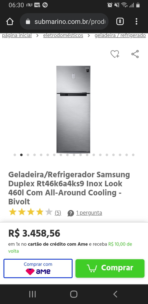 Geladeira/Refrigerador Samsung Duplex RT46K6A4KS9 Inox Look 460L