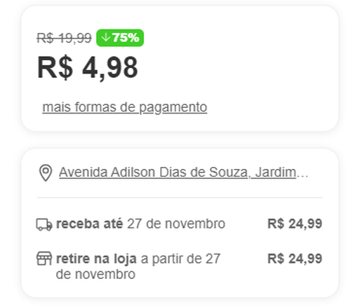 24,99 para retirar na loja! Kkkk