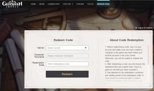 Escolha o servidor e o seu personagem, então basta digitar o código. Caso você jogue no servidor Americano, o código do pacote é: Genshin0928N; se jogar na Europa ou Ásia, os códigos são Genshin0928E e Genshin0928A, respectivamente.
