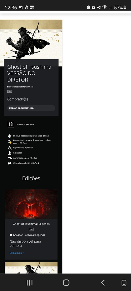 Galera, consegui comprar e pegar, mas no PS não aparece o jogo na biblioteca pra baixar, apenas pelo site. No de vocês também? Coloquei pra baixar, mas pelo site, porque pelo PS não aparece