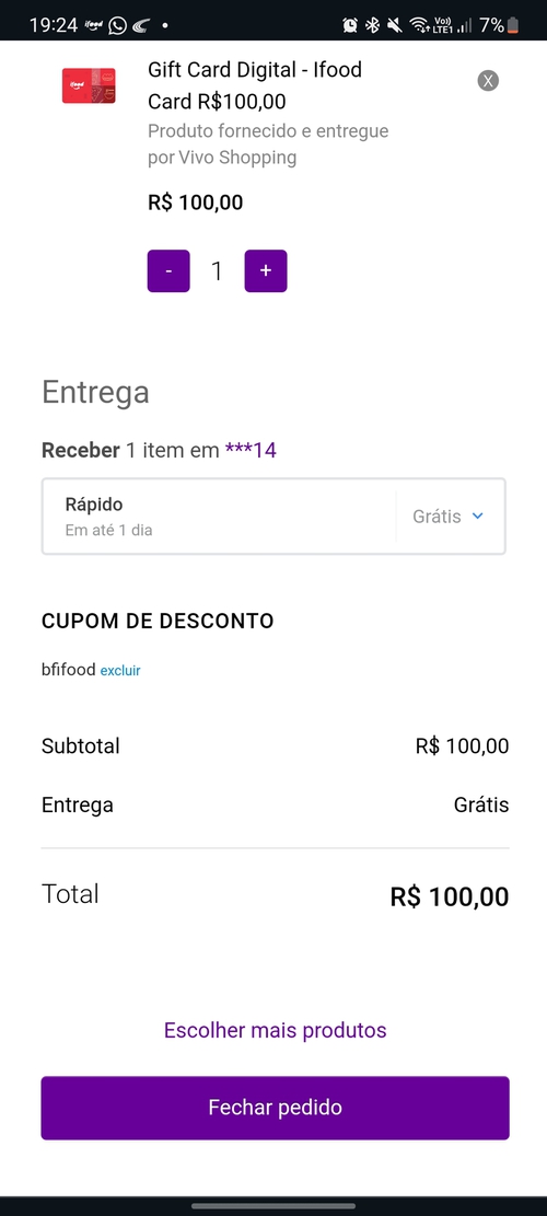 Gift Card Digital - Ifood Card R$100,00