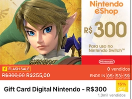 Nintendo eShop para uso no Nintendo Switch. O saldo só pode ser utilizado usando uma conta Nintendo ou uma identificação do Nintendo Network no Nintendo eShop e em demais serviços de compra de jogos e outros conteúdos da Nintendo.