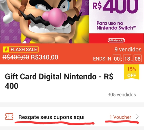 Gift Card Nintendo de R$ 400,00