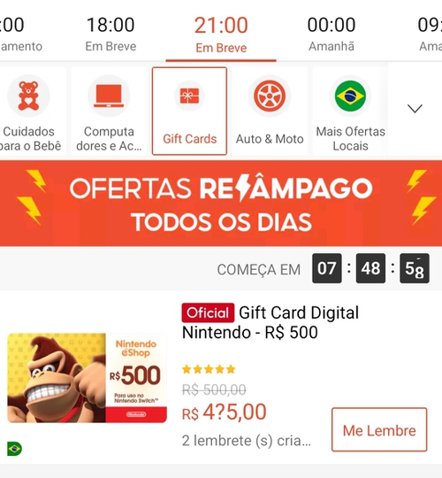 O Gift Card está em flash sale por R$ 340,00.