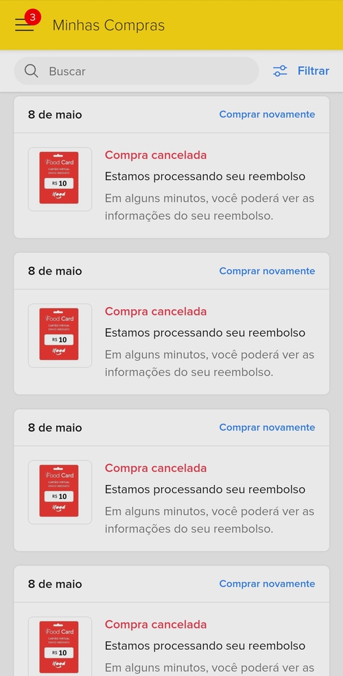 O meu duplicaram uma das compras ,cobraram duas vezes e em outras duas cancelaram