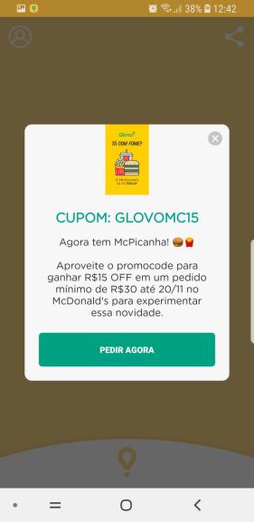 [Glovo] R$15 OFF em pedidos no McDonald's no Glovo
