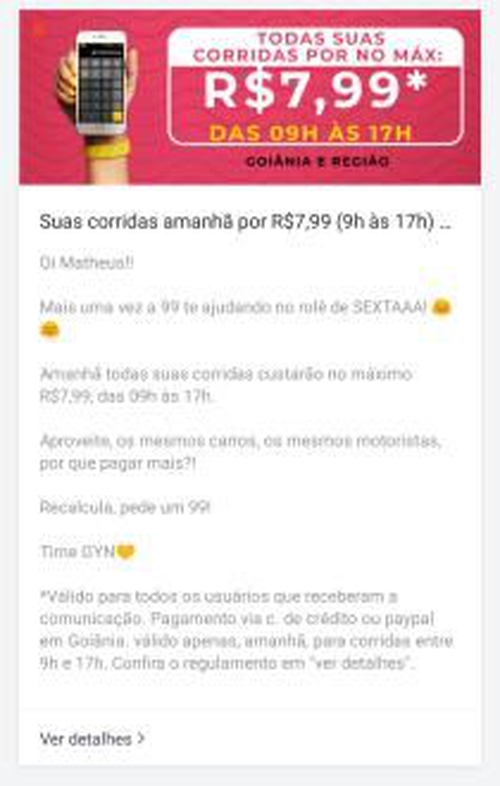 [Goiânia] Corridas no 99 POP por no máximo R$7,99