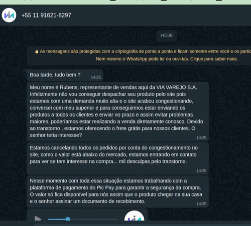 Galera a deve vendedor é golpe, depois da compra entraram em contato pelo WhatsApp, cuidado com o marketplace da Amazon, demoram muito para estornar o valor também