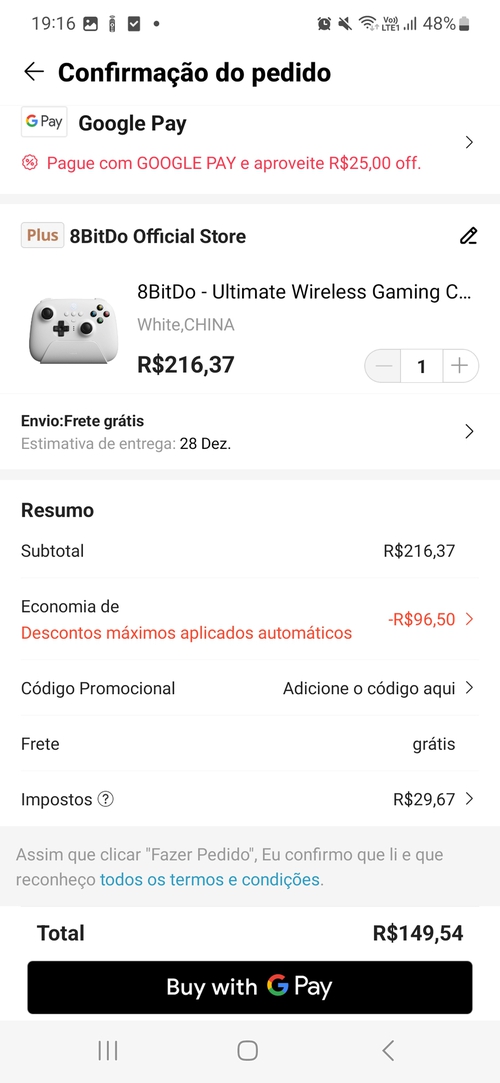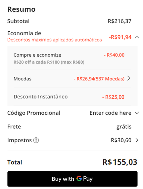 Maravilha! Consegui pegar por R$149,54. Preção.