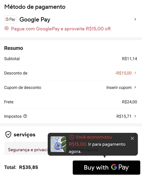 - Quando o produto da promoção aparecer no aplicativo do Aliexpress, prossiga até o final, na tela de "Confirmação do pedido".