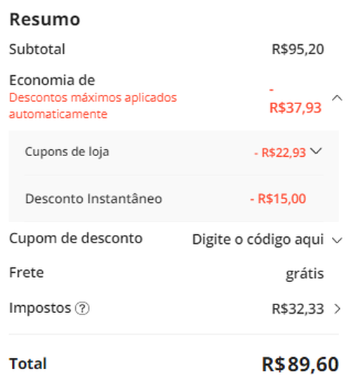 Valor considerando o uso do cupom da loja e desconto extra por pagamento via Google Pay de forma automática.