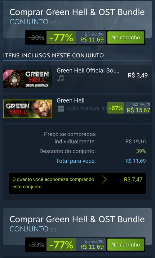 É necessário comprar o bundle do game + o soundtrack, senão sai mais caro