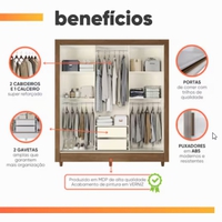 Guarda Roupas Casal com 3 Portas de Correr 2 Gavetas França Andirá - Bege | Marrom